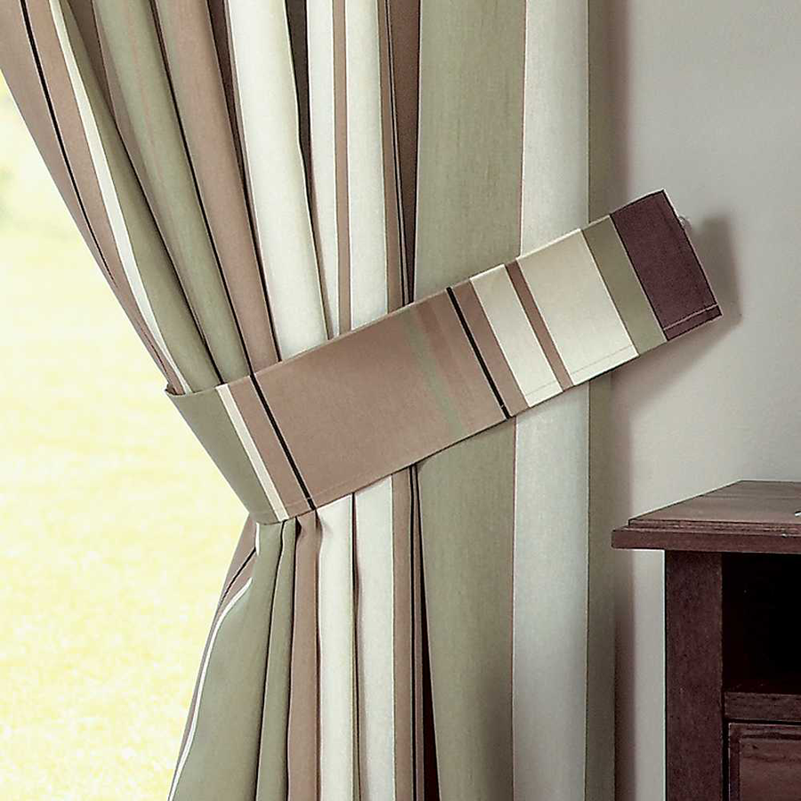 Custom-made to suit the length of your curtains, fabric tie-backs are a stylish way to keep your curtains clear of windows, maximizing the light coming into your room. Piped edging is available, or you may prefer a plain option.
