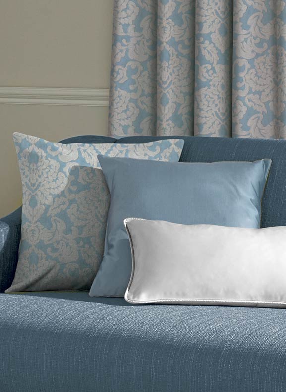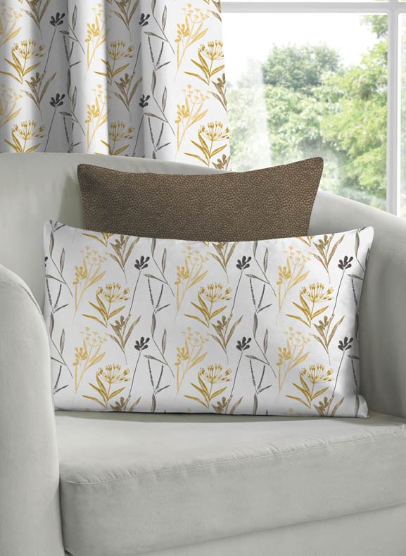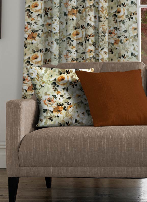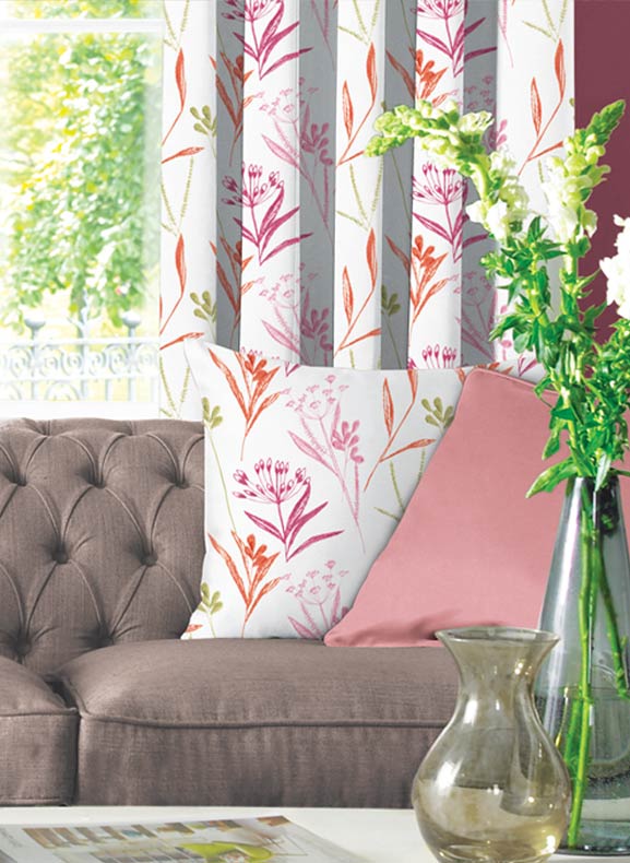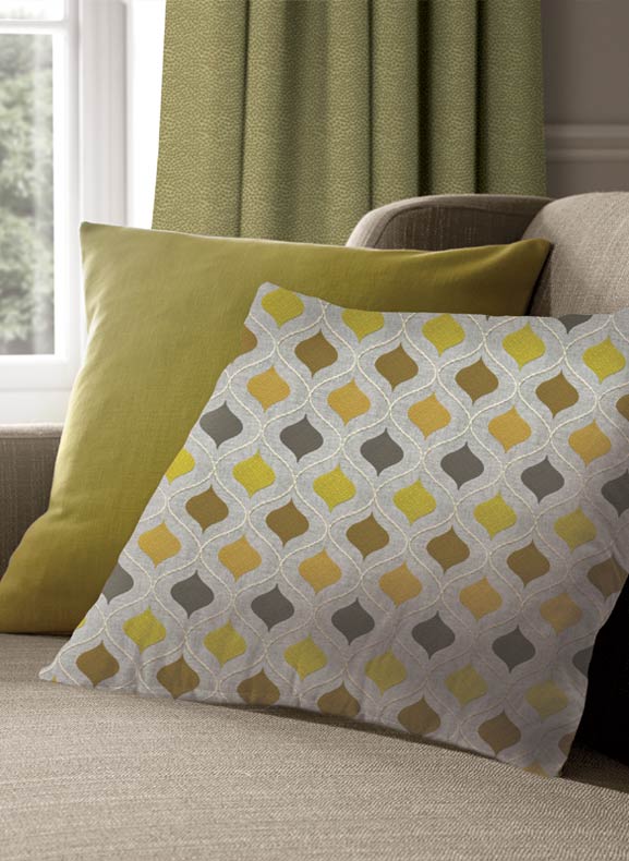 Dress your sofa or bedroom with cushions in matching fabric to your curtains. Whether its plain or patterned it will give your room an elegant edge. Ranging from checks or shimmer, velet to sequined create a cosy addition to your favorite seating area. Add floral prints to complete a quirky while complementing them with plain colour matched cloth.